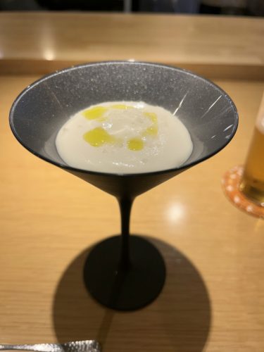 カウンターのみの創作和食屋さん。おまかせコースのみ。季節に合わせた食材が頂けます。価格もリーズナブルでとてもおいしかったです。この後すぐ満席に。予約必須。雰囲気もよく楽しいディナーができました。